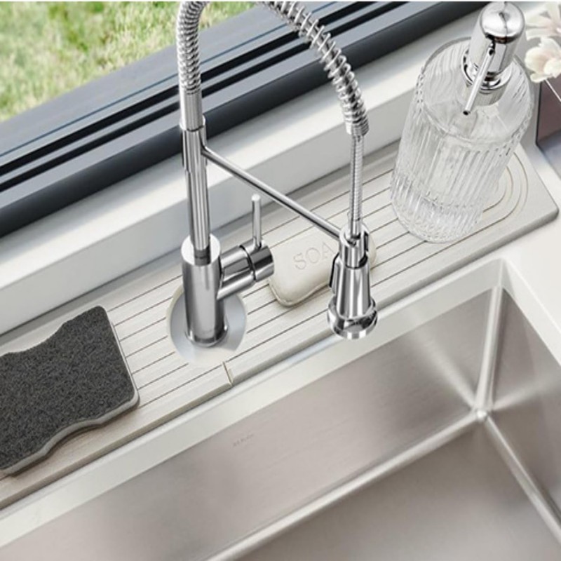 - 【Modern Stylish design】Designed for the modern home, our faucet drip mat for kitchen sink combines aesthetics and functionality to impress guests and keep your sink clean. Preventing water from splashing onto your countertops and surrounding areas. Say goodbye to messy and wet surfaces that require constant wiping and cleaning. Not just for the kitchen,but also for bathroom, RV, and bar spigots.