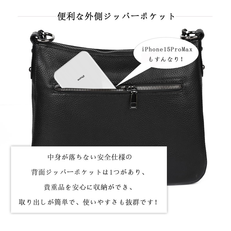 MFFOR Women's 2-Way Crossbody Shoulder Bag, Genuine Leather, Handbag, Crossbody Shoulder Bag, Zipper Pocket, Lightweight, Large Capacity, Soft, Simple, Casual, Handheld, Popular, Commuting to Work,