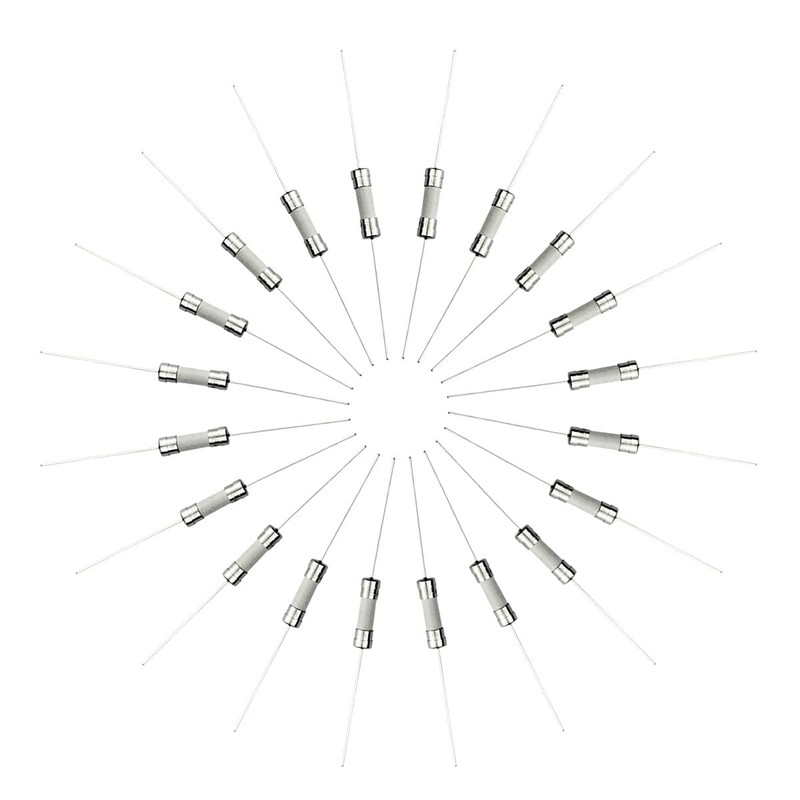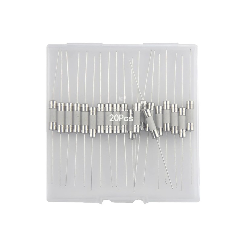 MFLAMO T6.3A Fuses T6.3AH250V Ceramic Axial Lead Fuse 5x20mm/0.2''x0.79'' Delay Slow Melting 6.3AMP 250V Delay Fuse Packag in a Clear Environmental Protection Plastic Box (20PCS), Silver