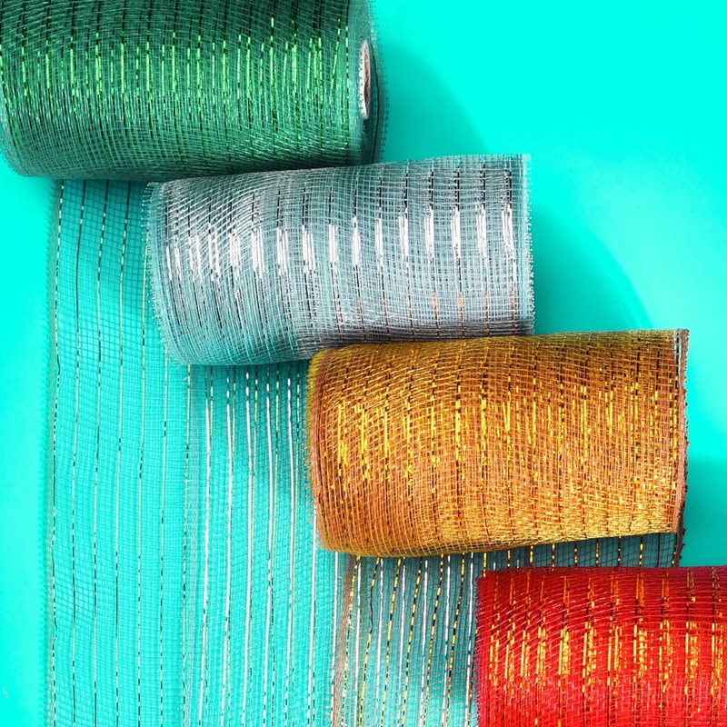 MFUOE 4 Rolls 15cm x 10 Yards Christmas Mesh Ribbon Rolls Red Green Gold Silver Poly Mesh Rolls Christmas Deco Mesh Rolls for Wreath Swags