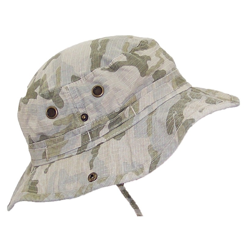 MG Camouflage Ripstop Floppy/Bucket Summer Hat W/Snap Up Sides & Chin Strap - Desert Camo Medium