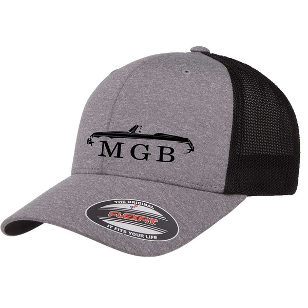 MG MGB Convertible Sports Car Classic Outline Design Flexfit 6511 Trucker Mesh Fitted Cap Heather/Black