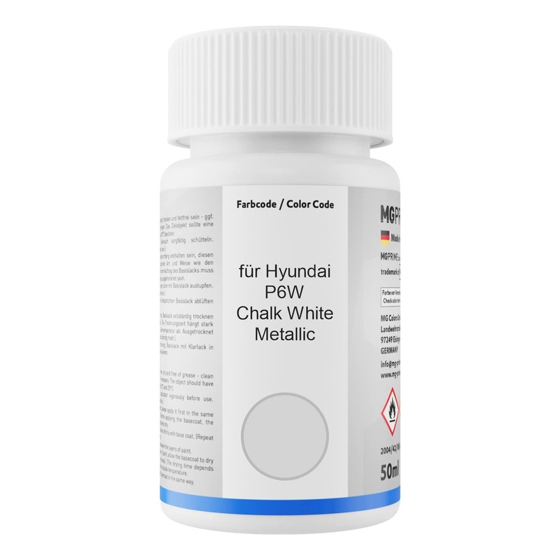 - 50 ml Lackfläschchen Basislack für Hyundai P6W Chalk White Metallic