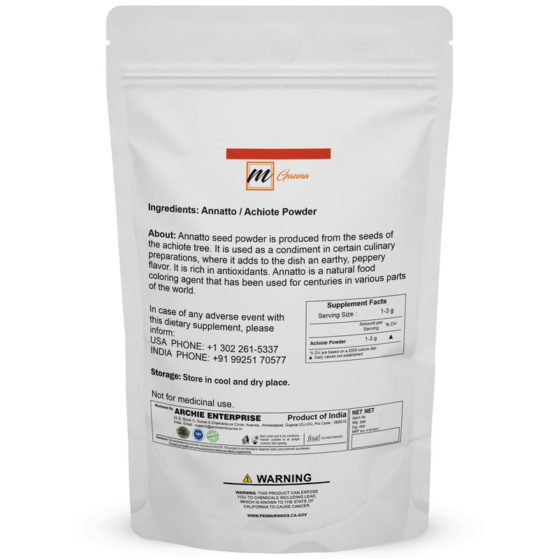 mGanna Pure Annatto Seed/Achiote Powder - A Spice Delight 0.5 lbs / 227 gms