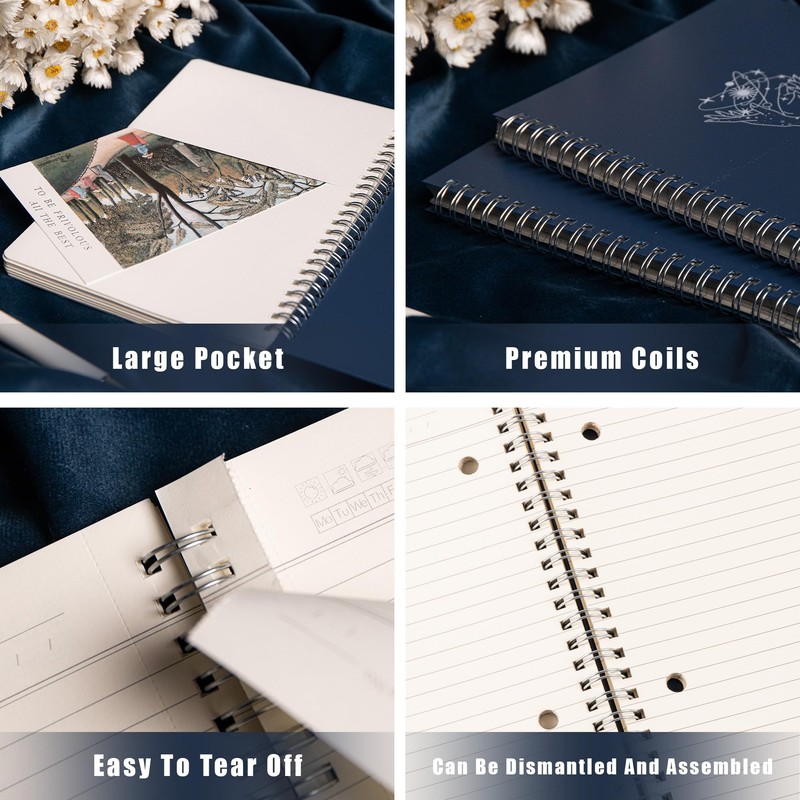 - DETAILS: Spiral notebook is made of high-quality double layer coil ring, 100gsm 160 pages, with paper pocket, each page comes with tearable thread, standard 7mmcollege ruled, the top of each page of the diary contains self-addressed date weather topic and other conditions, it’s a high-quality choice for journaling, note-taking and planner.