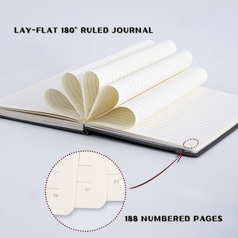 • LAY-FLAT 180° RULED JOURNAL: An utterly flat design journal is more suitable for reading and writing, do not worry about pressing out the crease; both the left and right sides of the paper can be written on, bringing you the perfect writing feeling.