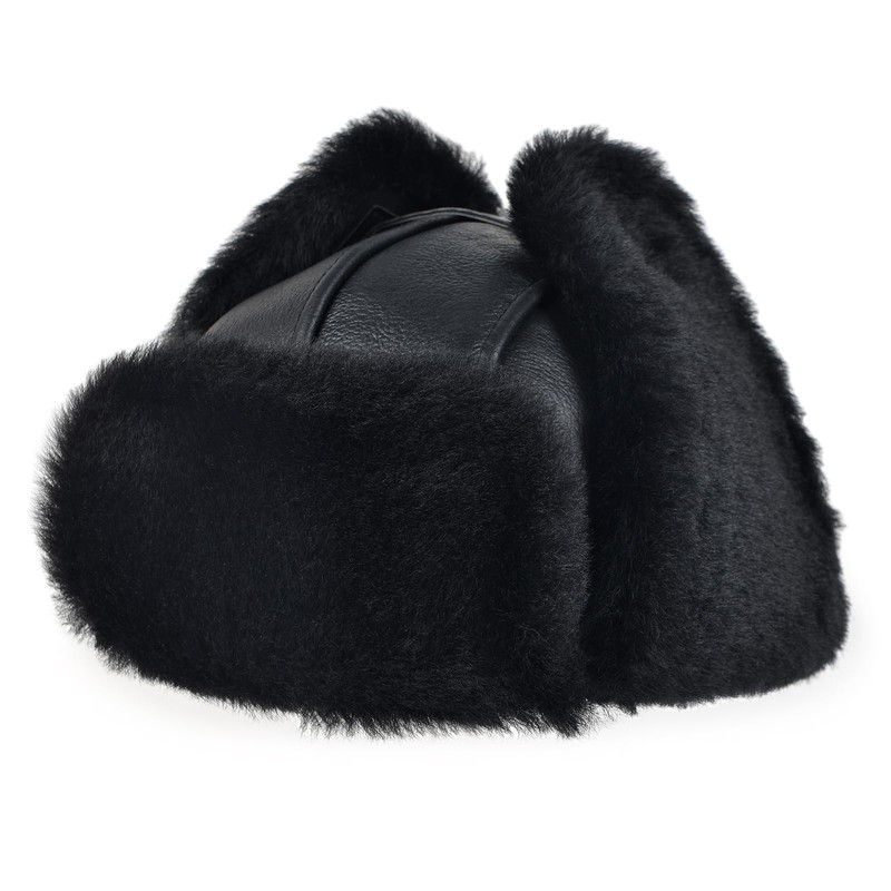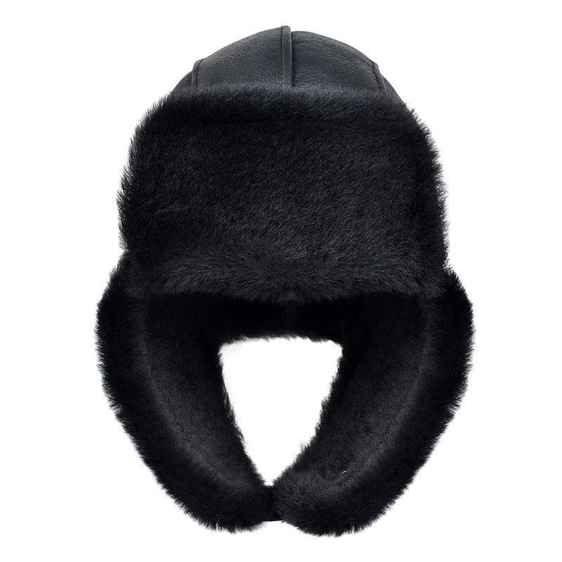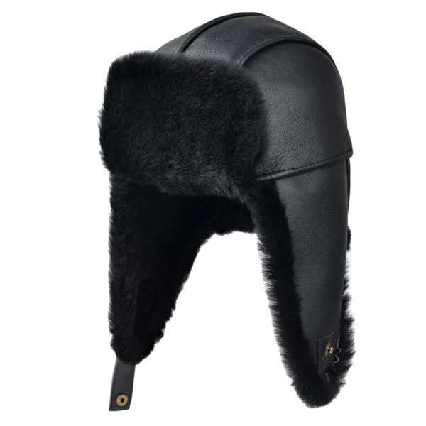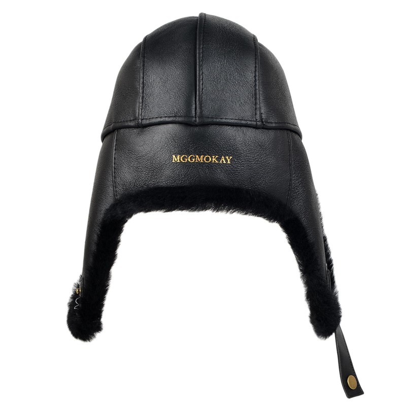 MGGMOKAY Aviator Hat Genuine Shearling Leather Aviator Cap Warm Russian hat,Black,S