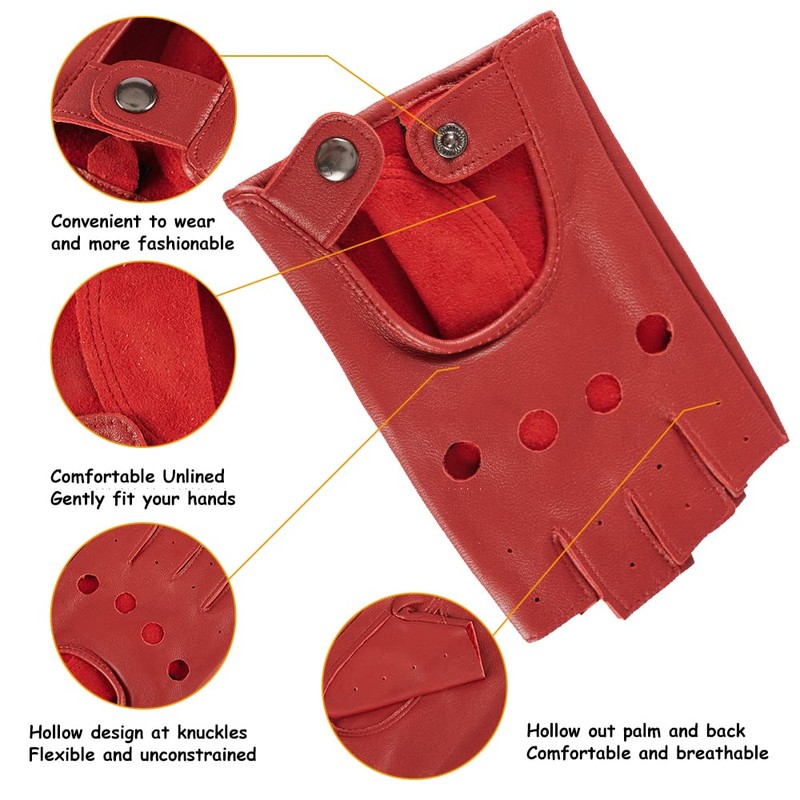 MGGMOKAY Womens Fingerless Leather Driving Gloves Soft Sheepskin Half Finger Gloves Unlined,Red,XL
