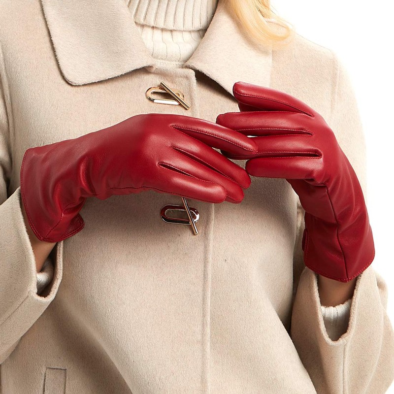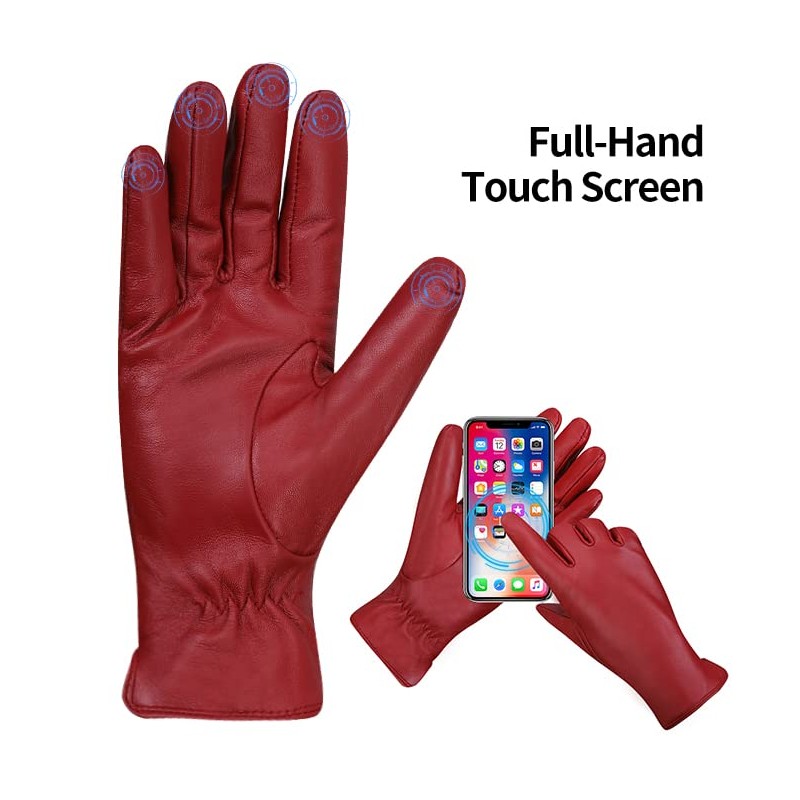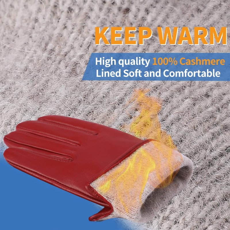 MGGMOKAY Womens Touchscreen Nappa Lambskin Leather Gloves(100% Cashmere Lining),Red,X-Large