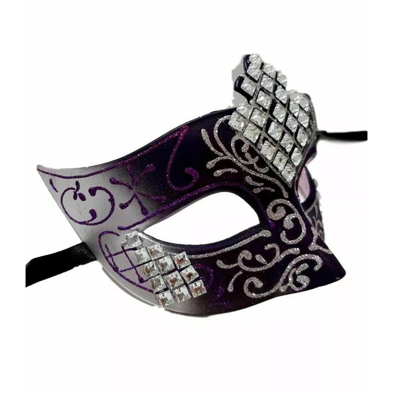 MGMB Dark Purple Silver Diamond Scroll Venetian Masquerade Mask