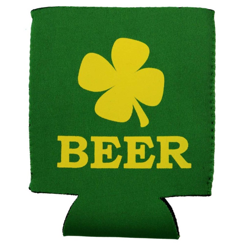 SET OF 12 A green collapsible beverage cooler featuring a bright yellow four leaf clover and the word BEER in bold. This neoprene beverage insulator is perfect for St. Patrick's day. Keep your beer icy cold for the celebration.