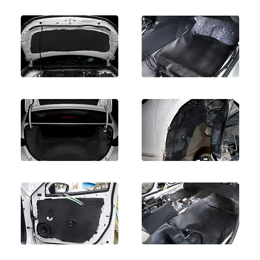 1) This product is 100% brand new. 2) Can be used for the entire interior of any vehicle including: floor panel, door, carpet under/seat, headliner/roof, trunk, trunk lid, firewall (internal side). 3) By reducing or suppressing the sound vibration of the metal plate, you can eliminate road noise. 4) Easy to install, suitable for various car models, simply trim pieces to fit, peel and place and hand roll to ensure good adhesion. No messy spray paint or adhesive is required to install this product. 5) This car insulation is used in many applications, such as muscle cars, hot rods, light cruisers, imports, tuners, street rods, mouse rods, classic cars, racing cars, stock cars, old antique cars, pickups, trucks, low rider and many more. We even have customers using it on their SUVs, vans, RVs, luxury cars, campers, yachts, RVs and school buses.