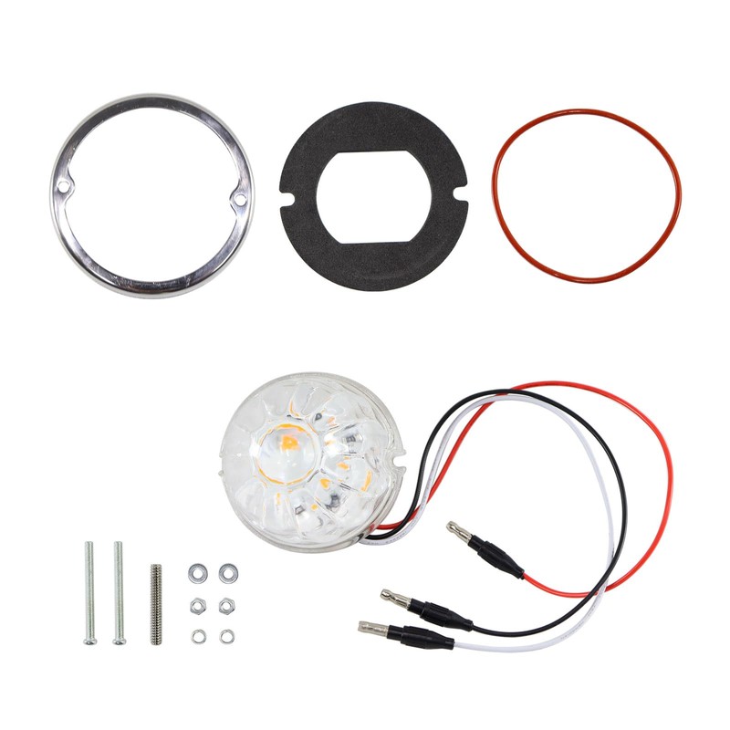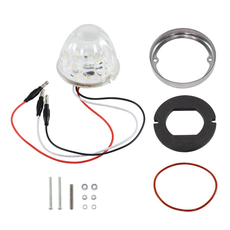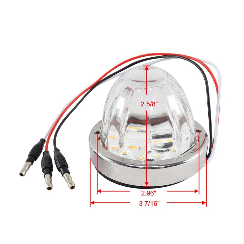 MGWILL Amber/Clear Watermelon Turn/Marker Light 18 LED Surface Mount Glass Lens with Stainless Steel Bezel