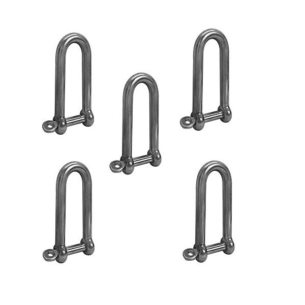 MH GLOBAL 5/16" Boat Marine Stainless Steel Eye Screw Pin Chain Long D Shackle Sailing Rigging - Pack 5