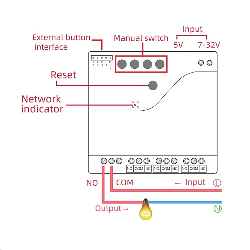 - Easy to Setup,Input voltage is USB 5V or DC 7-32V.Once it's powered up,enable phone bluetooth and open tuya/smart life app,it will be found automatically,enter correct wifi password,it will be configured.It's clean contact relay,without voltage on the output, you need to lead from the input, or provide additional power for the load to use.allows us to handle loads at 250V (maximum 10 amperes) on the load side based on currents as low as 5V/12V,