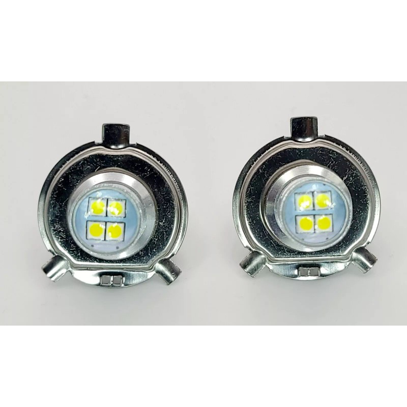 1 pair (2 bulbs) of new SUPER bright high-quality LED bulbs for a Deere 1023E, 1026R (does NOT fit a 1025R) headlights and others that use a GE 12v 60/55watt bulb (see the list below). They are both high and low beam (dual function). They fit directly into your headlight sockets. They are a bright white in color (6500K). They are brighter, last longer, use less watts (but are 10x brighter per watt), and will not melt your lens if kept on too long. They do not get hot like halogen bulbs. They are non-polarity so you just plug them in. There is no modification or rewiring needed to your machine. It's as easy as changing a light bulb!