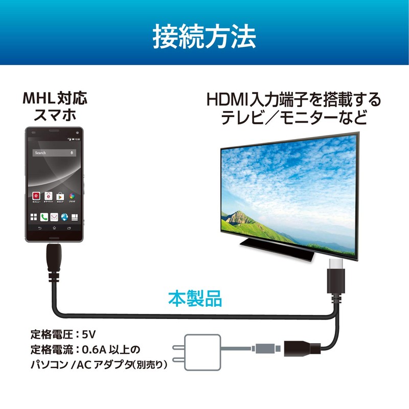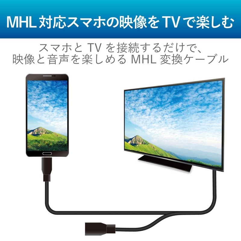 - This MHL cable allows you to connect a smartphone with a USB (microB type) interface to a TV or monitor with an HDMI (TypeA) interface to enjoy video and audio