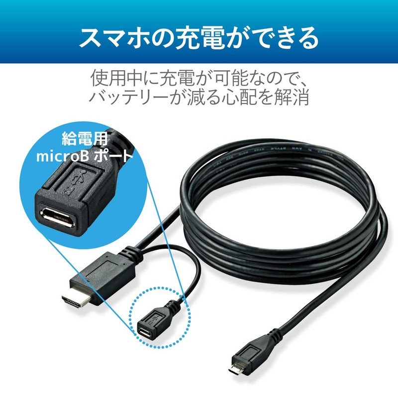 - You can charge your smartphone by connecting the cable, so you can enjoy video and audio without worrying about battery drainage