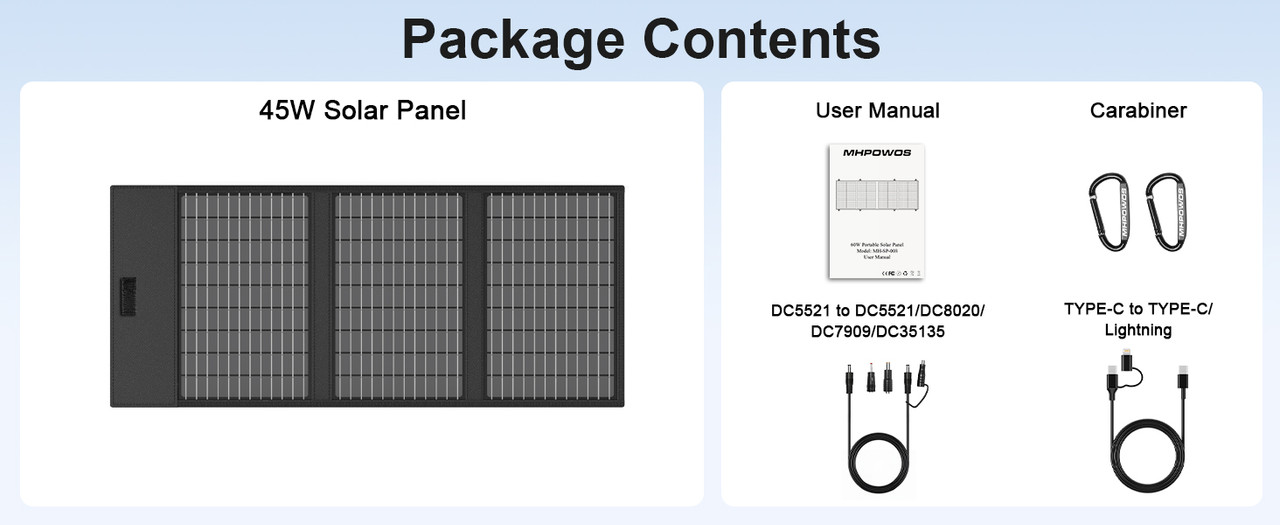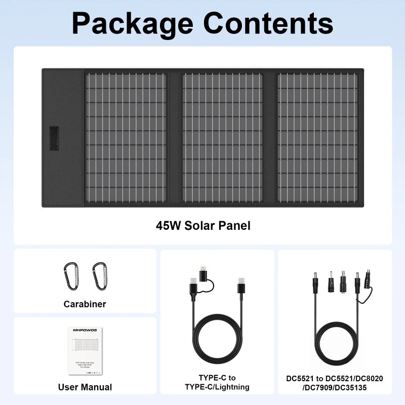 MHPOWOS 45W Portable Foldable Solar Panel with USB Ports