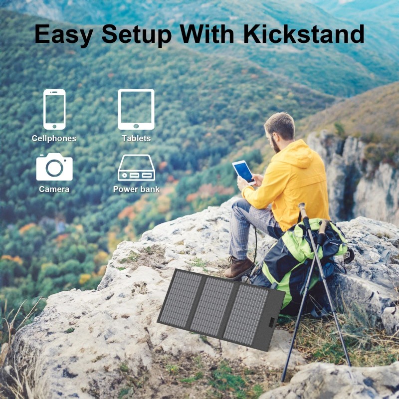 harnessing 45W of clean solar energy. Perfect for hiking, camping, RV trips, or