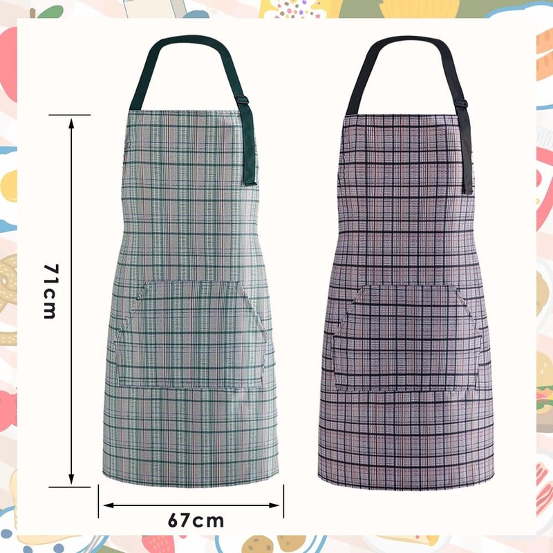 MHwan Women's Apron, Pack of 2 Waterproof and Oil-Resistant Cooking Aprons, Fashionable, Classic Plaid, Wear-resistant and Durable Kitchen Apron, Adjustable