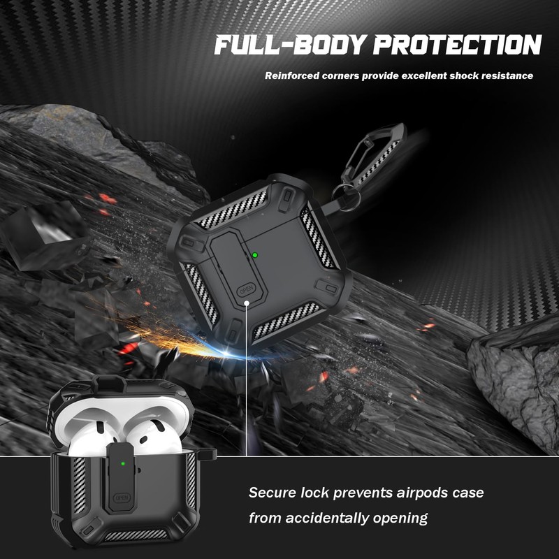 • [Unique Security Lock]: Upgraded security lock design makes it easier to open and close. Keeps the for AirPods charging case well closed and ensures that the cover never falls off.
