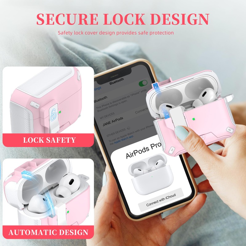 - 【Automatic Button Switch Design】Upgrade secure lock Design, Just press the button lightly and your AirPods will pop open automatically. It is simple and convenient to operate, and the safety lock design can also prevent damage caused by accidental falls.