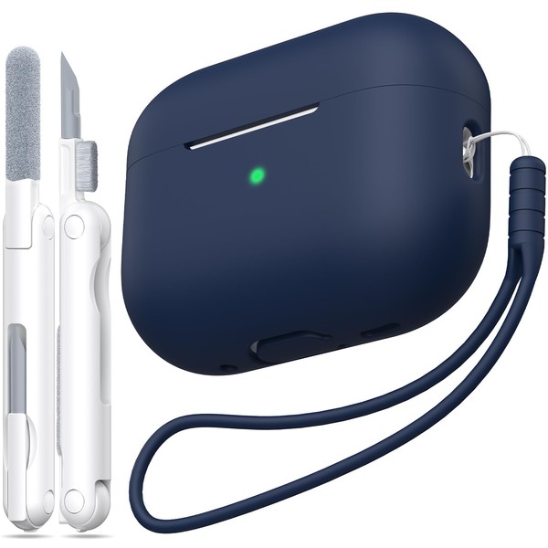 MHYALUDO for AirPods Pro 2nd Generation Case Cover, Military Grade Anti-Fall Soft Silicone Shock-Absorbing for AirPods Pro Case Skin Touch with Keychain and Cleaning Kit, Midnight Blue