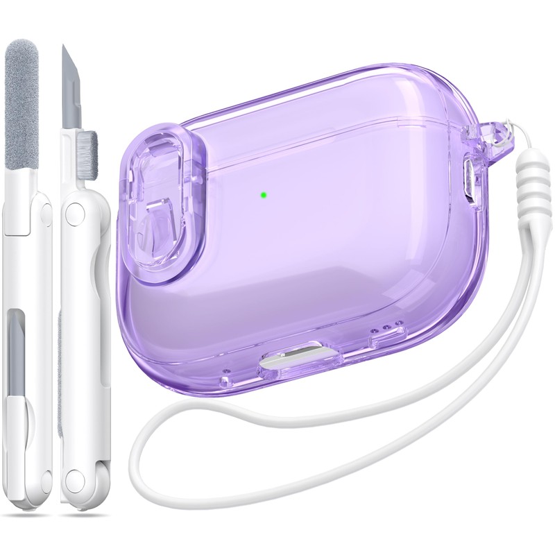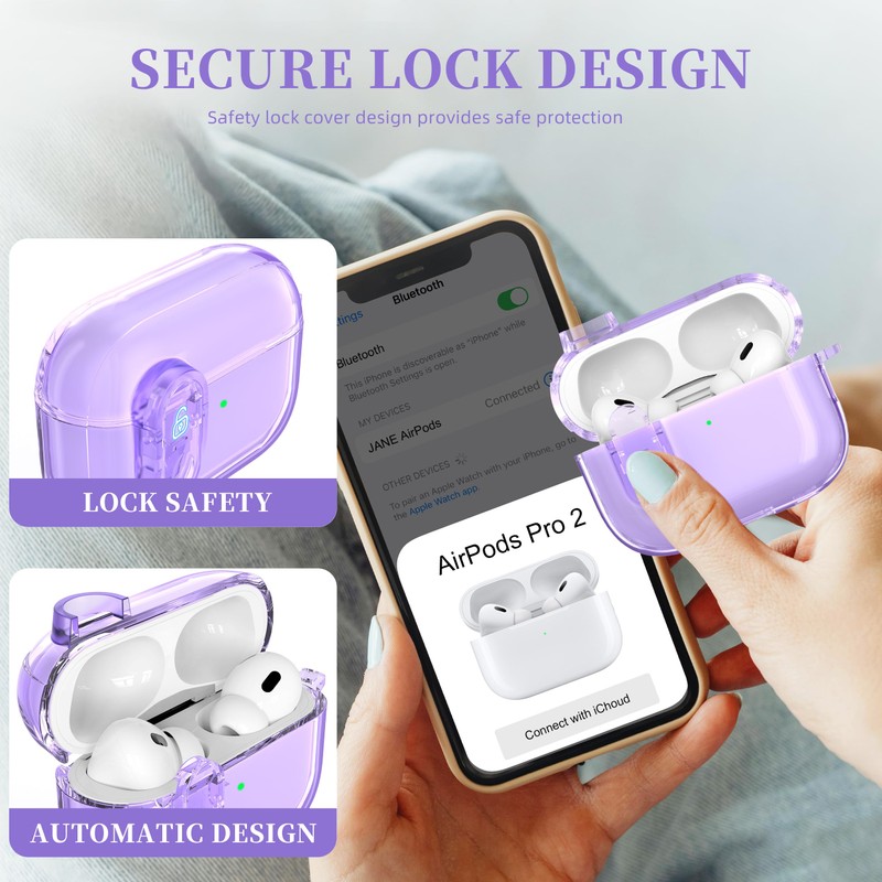 MHYALUDO for Airpods Pro 2nd Generation Case with Secure Lock, Compatible with Airpods Pro Case 2nd/1st Gen, Clear Soft TPU Transparent Military Grade Shockproof Cover, Crystal Purple