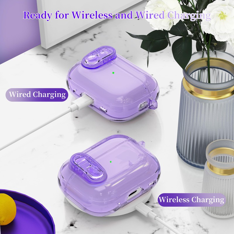 - 【Transparent Design with LED Indicator】:The crystal-clear TPU material showcases the original beauty of your AirPods while allowing you to monitor the charging status effortlessly. The front LED indicator no need to remove the case! Perfect for quick checks at home, in the office, or on the go.