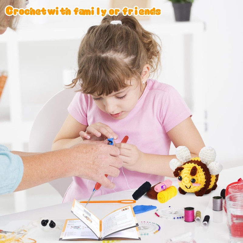 MHYMX Crochet Kits for Beginners Adults, Crochet Set Beginners Crochet Kit Crochet Animals Starter Kit Hand-Knit Big Bee Knitting Kit with Step-by-Step Video Tutorials