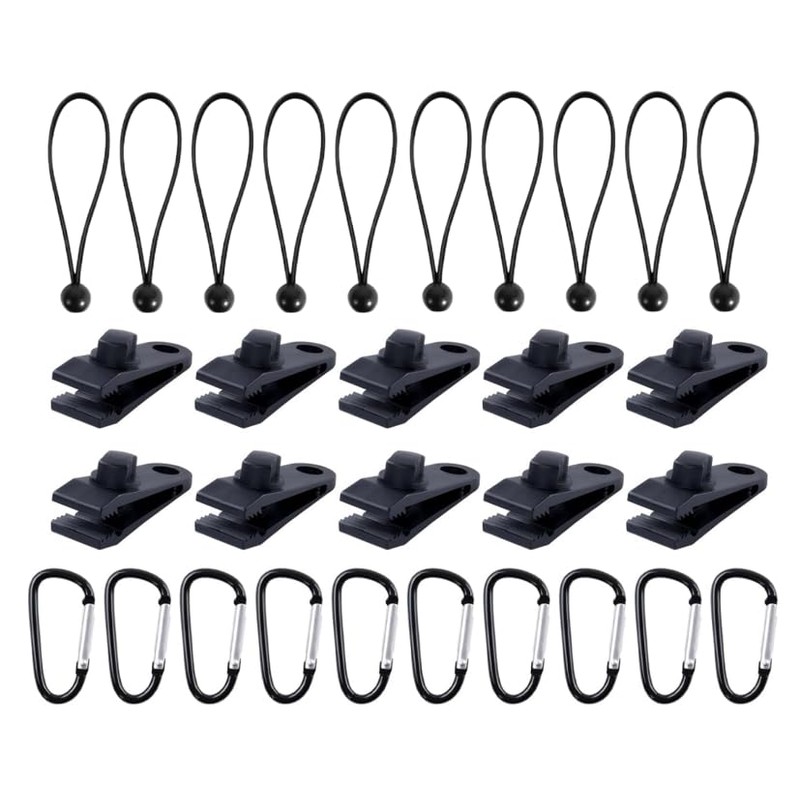MHZXLC 30 Piezas Clips de Lona Pinzas de Tienda con Cuerdas Elásticas de Bola y Mosquetón para La Fijación de Lonas, Toldos, Camping al Aire Libre, Caravanas, Marquesinas