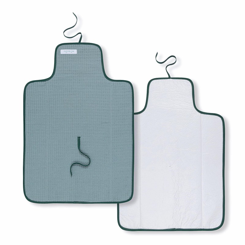 - WATERPROOF CHANGING MAT Make diaper changing easier wherever you go with our portable changing mat that is compact and lightweight. The soft 100% cotton fabric and waffle texture ensure comfort and the water-repellent finish makes cleaning easier. In addition, the clasp with a double bow adds a touch of sweetness to any moment of change.