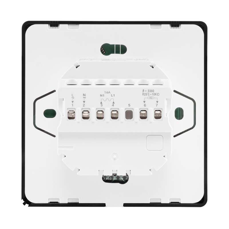 - Max. Switching capacity 16 A / 3680 watts, flush-mounted controller programmable wireless for electric floor heating, underfloor heating, water heating