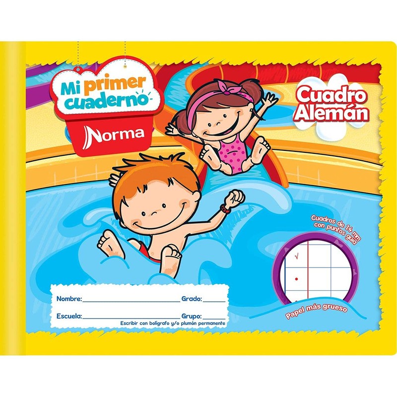 - Mi primer cuaderno Cuadro Alemán 72 hojas. Cuaderno ideal para niños en preescolar. Diseñado para el aprendizaje de la preescritura y las matemáticas. Sirve para trazos grandes, favorece el desarrollo de destreza de coordinación fina.