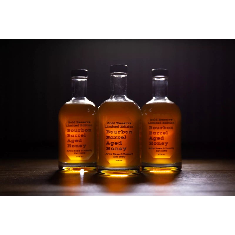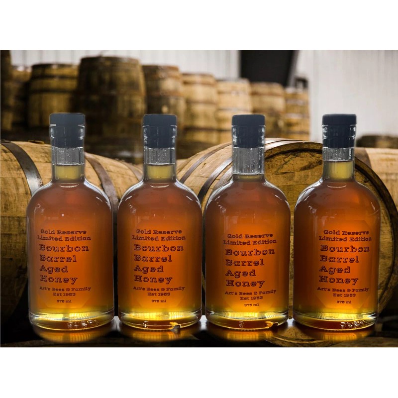 Meet our newest pocket-sized bestseller: Bourbon Barrel Aged Honey. Every drop of delicious honey is aged to perfection in a wooden bourbon barrel sourced from a local distillery. Sold in a pack of six 8.5 oz / 250mL bottles.