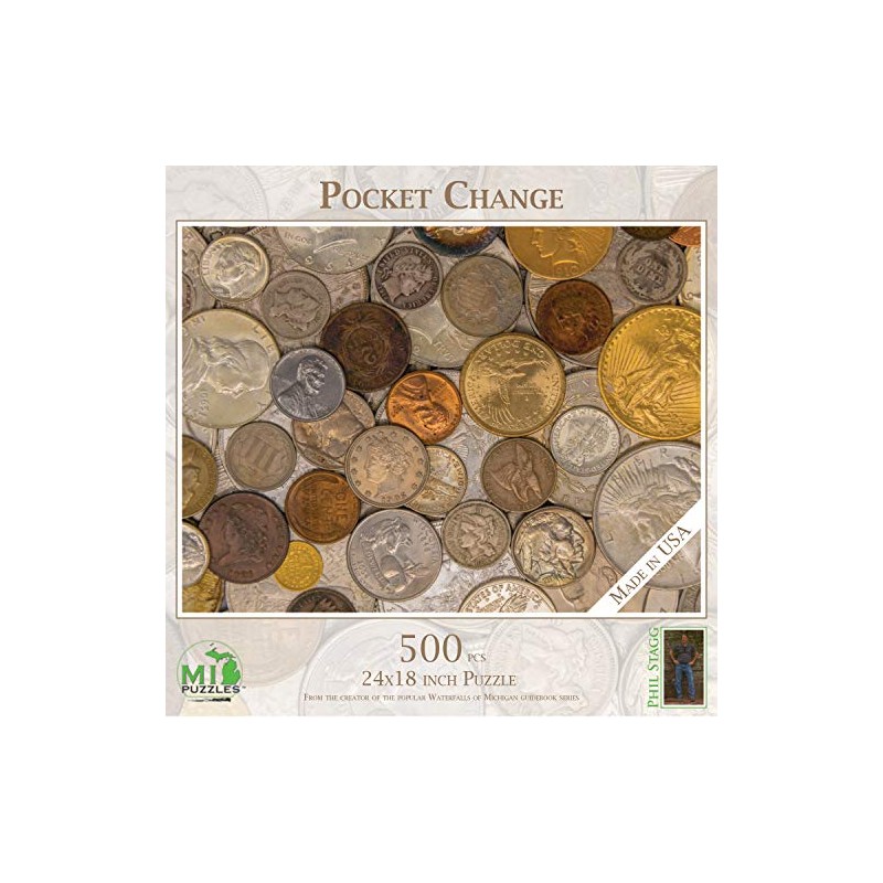 MI Puzzles Pocket Change 500 Piece Jigsaw Puzzle, 24”x18” Interlocking Jigsaw Puzzles for Adults & Families, Made in USA Jigsaw Puzzle