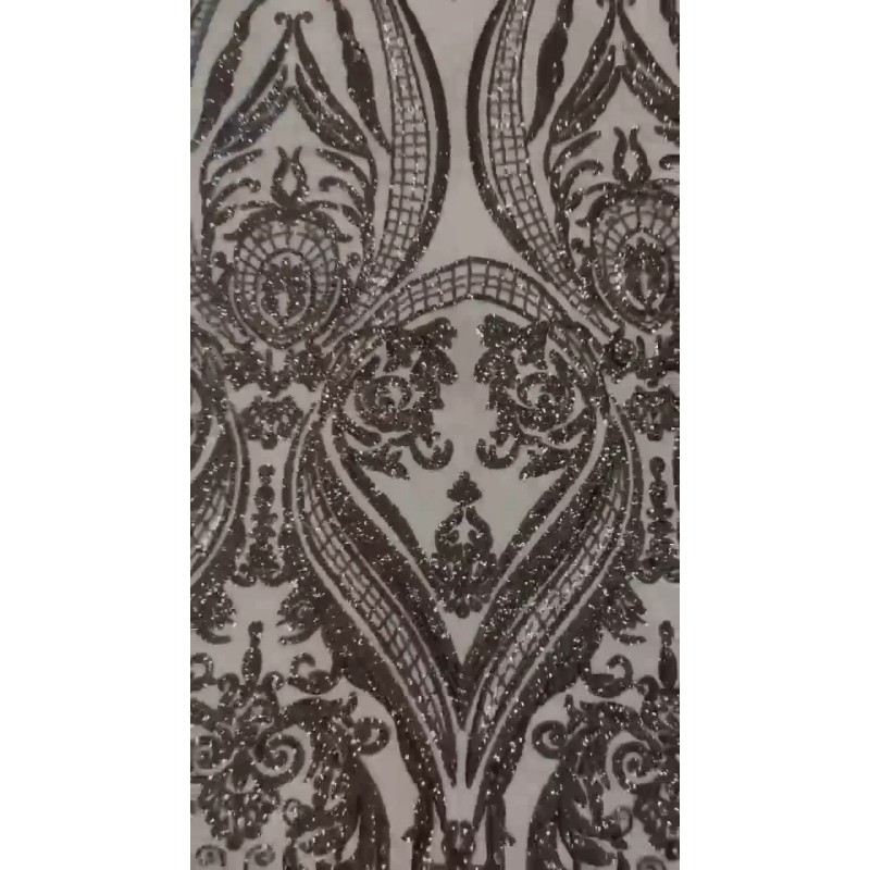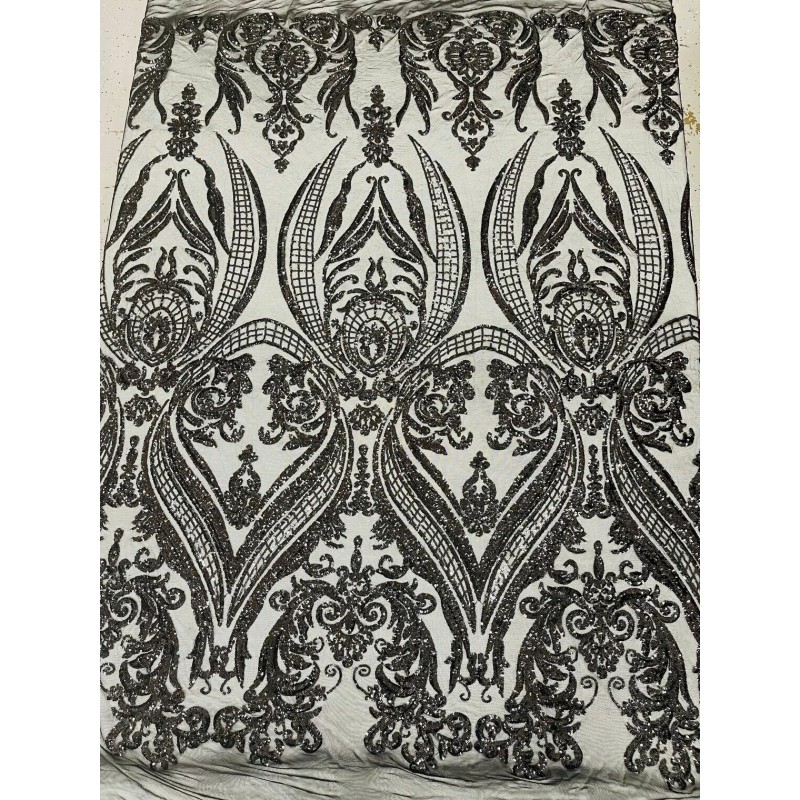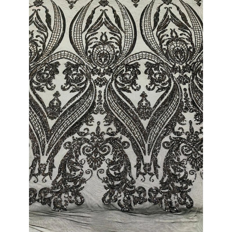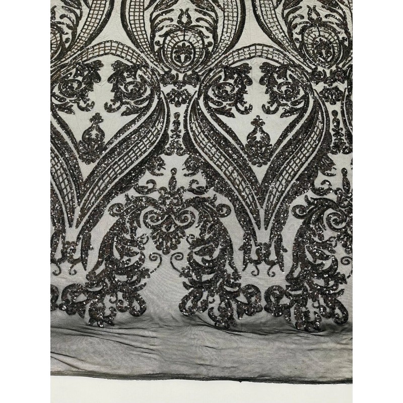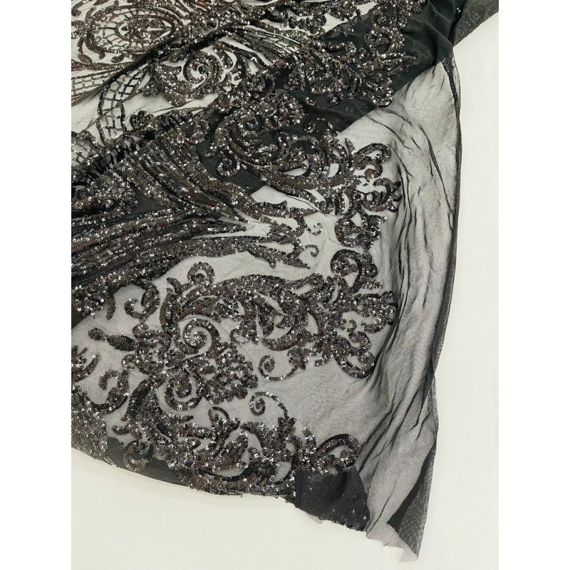 Mia Fabrics Inc. Big Damask Fabric - Black Holographic Embroidered Design Lace Mesh Fabric Yard