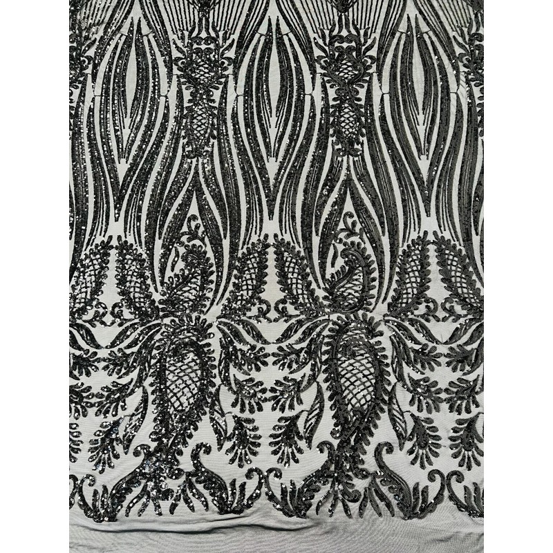 Mia Fabrics Inc. Paisley Lines Sequin Fabric - Black - 4 Way Stretch Fancy Fabric By Yard