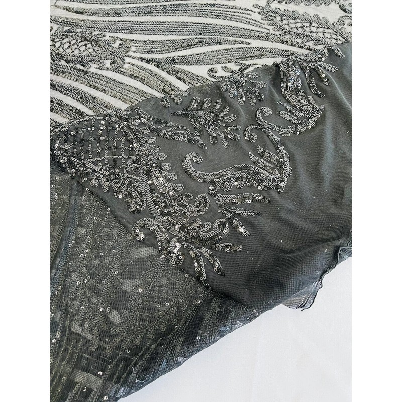 The material has a luxurious paisley sequin design embroidered on the mesh. It's super elegant and classy. This fabric material can be used for dresses, tablecloths, backdrops, night gowns, skirts, prom dresses, wedding dresses, runners for tables, decorations and much more!