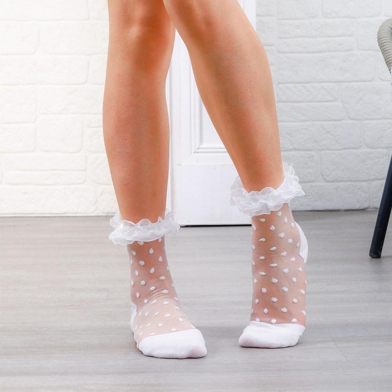 Miaband Ruffle See Through Socks Dot Lace Sheer Socks Tulle Cool Mesh Ankle Socks for Women 2 Pairs (US, Alpha, One Size, Regular, Regular, Ruffle)