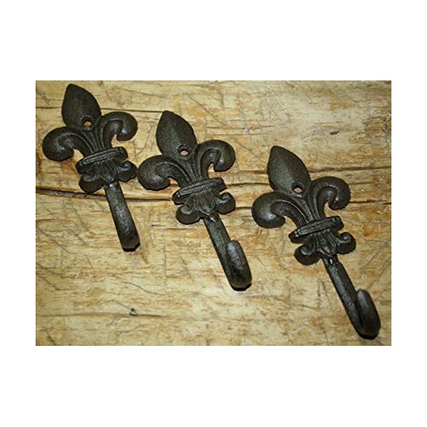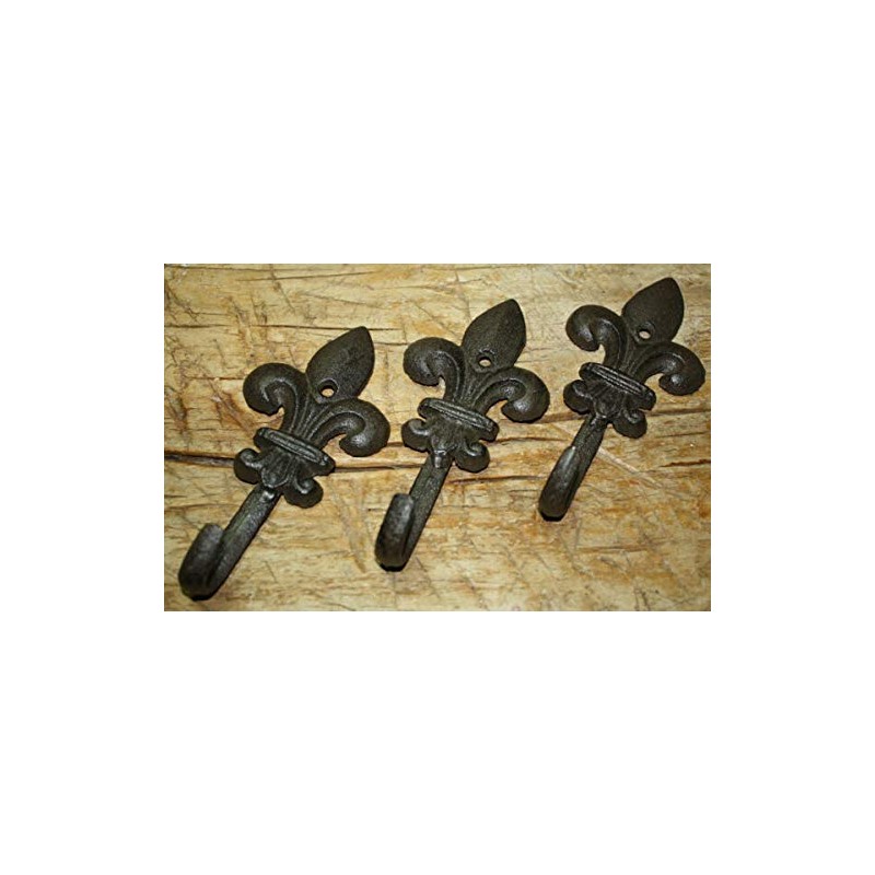 MIABE - 6 Cast Iron Antique Supplies for Style Rustic Fleur De Lis Coat Hooks...