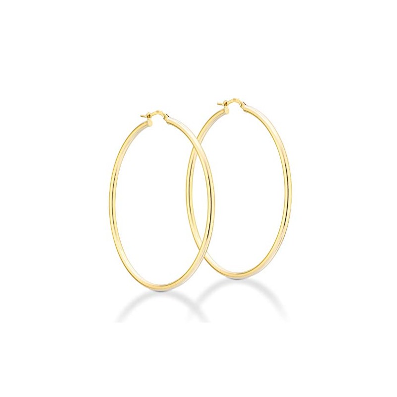 Miabella 18K Gold Over Sterling Silver 2mm High Polished Round Tube Hoop Lightweight Earrings for Women Made in Italy (50mm)