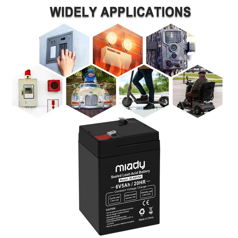 - What You GetMiady 6V 5AH Sealed Lead Acid (SLA) rechargeable maintenance free battery (2 Pack) and also back our products for 12 months. 24*7 friendly and professional customer supports. Note:Always check the manufactuer spec and ensure both the voltage and Ah ratings of this battery match your OEM specs