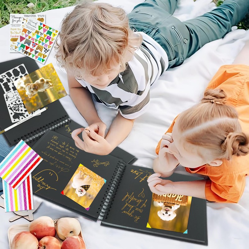 - High Quality Pages: The pages of this scrapbook are made of durable, smooth and hard kraft paper material. Easy to write, not easy to bend. You can write, draw, add photos, stickers, etc. to design the cover and inside pages, perfect to show your DIY creativity.