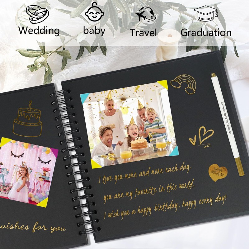 - Dimension: This scrap book is 25.5x25.5cm, with a total of 40 sheets (80 pages) inner pages, can hold 160 10x15 cm photos.Album contains premium accessories including 1 metal gold pen and 2 photo