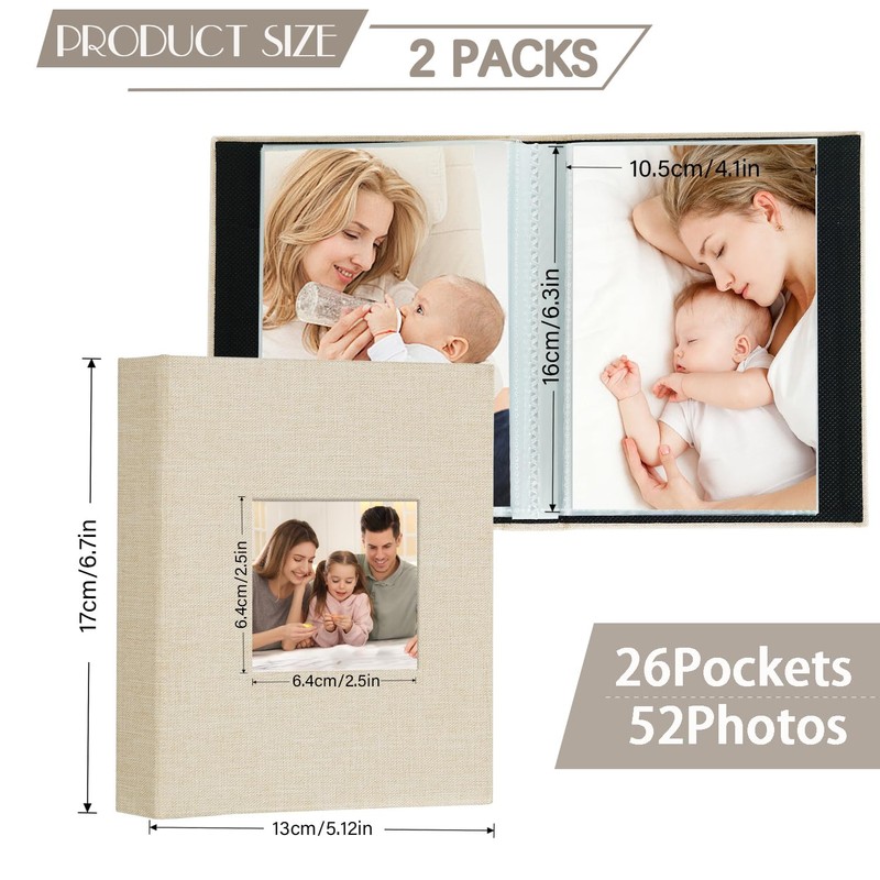 Miaikoe Small Photo Album 6x4 50 Pockets 2 Packs, Slip in Top Loading Linen Album Book Holds 100 Vertical 10x15cm Photos for Family Wedding Baby(Beige)