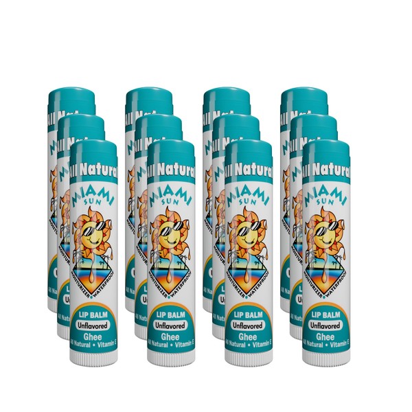 Miami Sun Natural Ghee Lip Balm, Hydrating Lip Treatment with Shea Butter & Beeswax, Organic & Non-Toxic, Best for Dry, Chapped Lips - Moisturizing, Healing, Chemical-Free Lip Care (12 Count, Natural)
