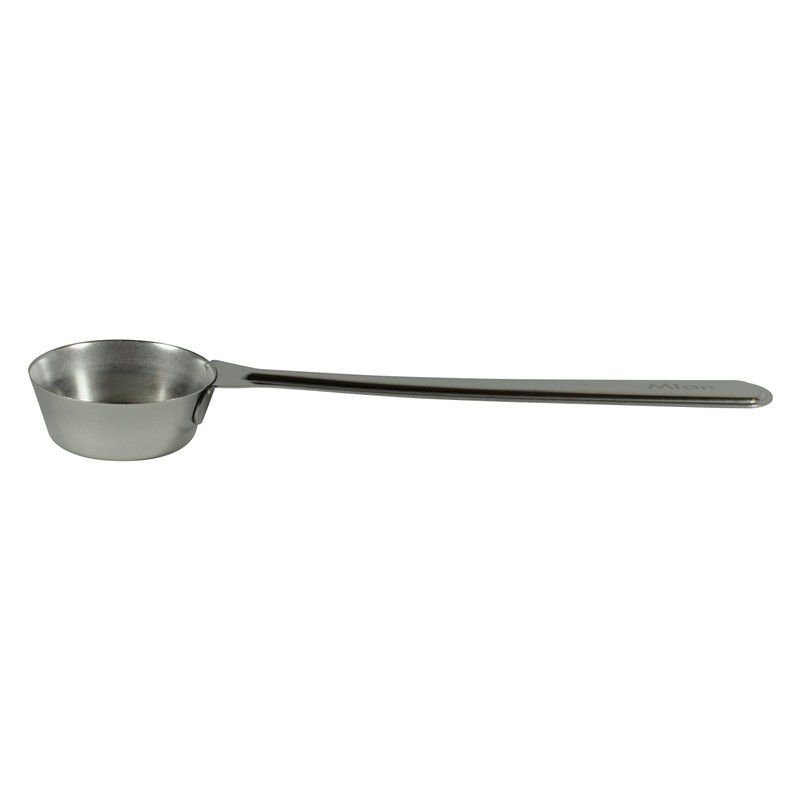 Mian stainless steel commercial long handle espresso coffee doser scoop. Measures 7.75" (19.69cm) long. Measures the perfect scoop every time. 2 Tablespoon capacity. Made of durable and hygienic polished stainless steel.