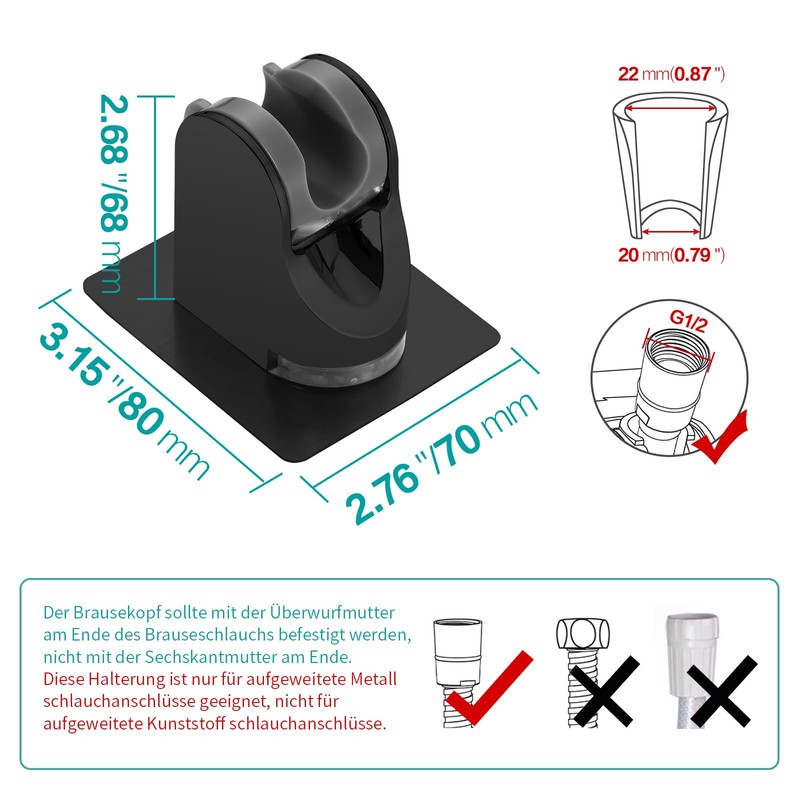 - ??Wasserdicht & Hochwertiges Material??: Die duschbrause halterung ist aus hochwertigem ABS gefertigt, das korrosions- und rostbest?ndig ist und die Wand nicht verf?rbt oder besch?digt. Das Material ist wasserdicht und gew?hrleistet eine langfristige Nutzung in feuchten Badezimmern. Passt zu den meisten G1/2" Handduschk?pfen und Handbidets in verschiedenen Ausf1hrungen.